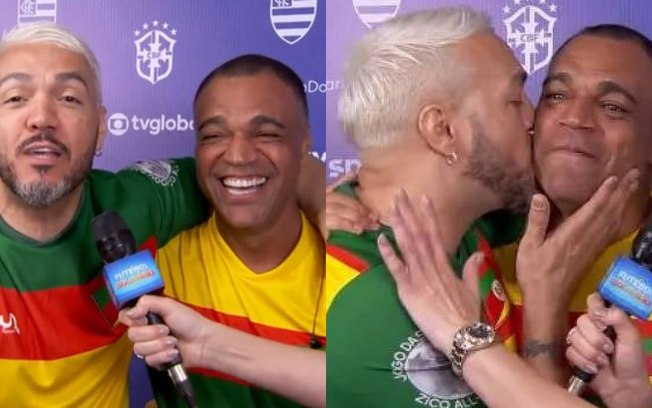 Denílson e Belo confraternizamFoto: Reprodução/GE