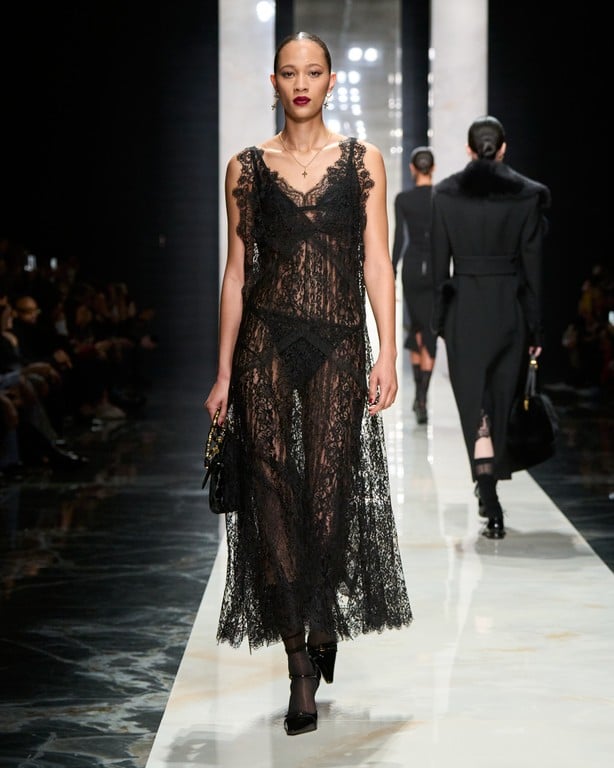 A D&G, que completou 40 anos de história em 2025, explica que esse posicionamento, de reafirmar a identidade, não tem a ver com nostalgia, mas com presença. Daí o preto que, segundo eles, representa a força. A renda, intimidade. A alfaiataria, autoridade. E a Sicília, terra que os inspira e embala essa estética, tem a ver com emoção.