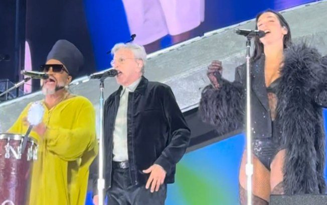 Dua Lipa, de 30 anos, surpreendeu o público na apresentação que realizou em São Paulo, no Estádio do MorumBis, neste sábado (15). Isso porque não apena cumpriu a promessa de cantar em português, como também convidou dois artistas para o momento.