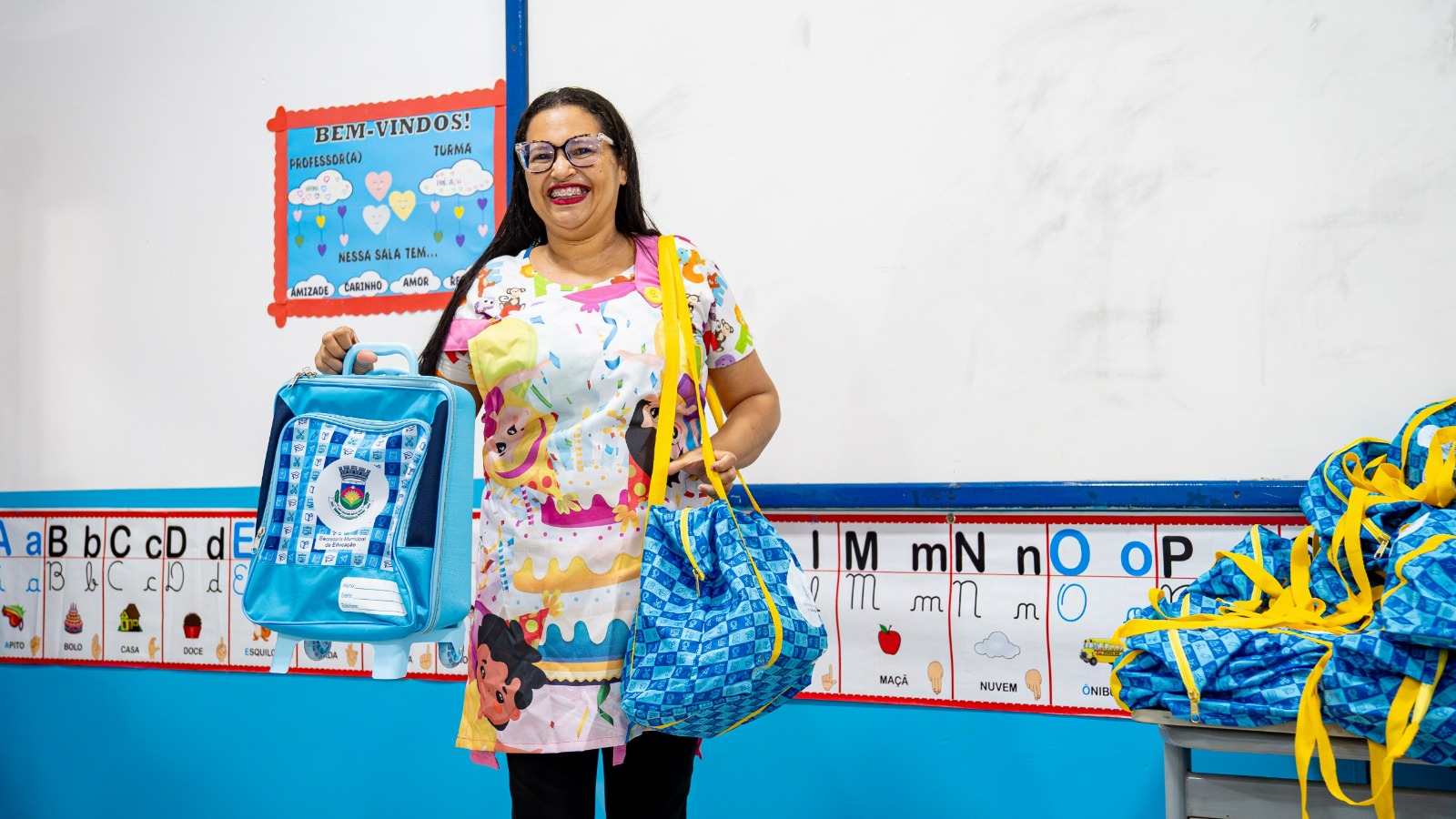 Para os estudantes da educação infantil a mochila vem com massinha de modelar, tinta, giz de cera, lápis de cor, materiais lúdicos e outros itens. Já para o Ensino fundamental, a mochila carrega agenda, cadernos, canetas, lápis, borracha, estojo e outros materiais. O secretário destaca ainda a ampliação da rede: Para este ano, temos três novas unidades, totalizando 44 escolas no município. São duas unidades em tempo integral com ensino bilíngue e outra de educação infantil.