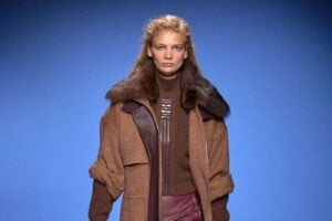 A SILHUETAS SÃO HISTÓRICAS, PARA PRONTAS PARA VIVER HOJE. Como é típico de Michele, o passado funciona menos como arquivo e mais como matéria-prima para reinvenção. O shape sereia retorna em saias e vestidos com glamour dramático, enquanto a cintura deslocada para baixo do quadril evoca discretamente os anos 1920 (um sinal da mudança de proporção que já vimos nesta temporada em outros desfiles!). Capas teatrais e casacos volumosos de pelos em cores inesperadas completam o quadro. Para o estilista, não são apenas roupas: são fragmentos de história reinterpretados à sua maneira e entrelaçados com os códigos da casa italiana que nós conhecemos (e amamos). Bravo!