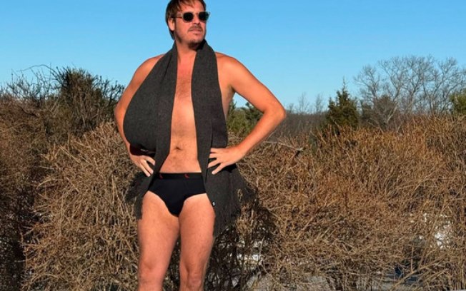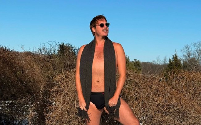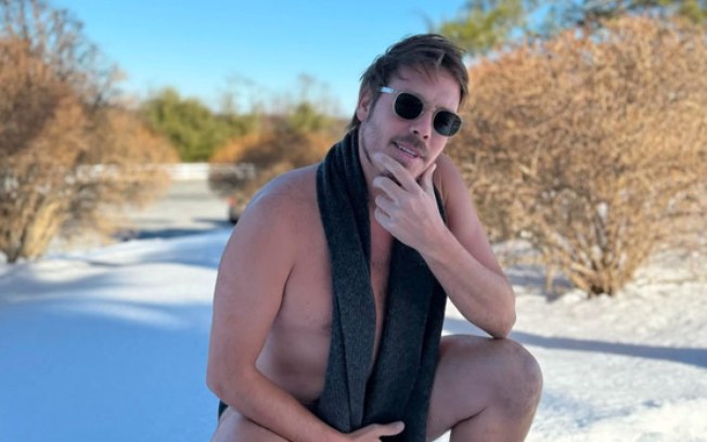 Fábio Porchat entrou para a brincadeira e também publicou um ensaio de fotos na neve utilizando apenas sunga. Neste sábado (15), o ator fez a própria versão da trend das famosas com poucas roupas em locais de baixas temperaturas.