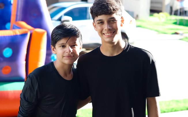 No registro, que foi feito durante a festa de aniversário de Bernardo, os adolescentes surgem sorridentes e abraçados. À época do falecimento de Cristiano Araújo, os João Gabriel e Bernardo eram bem pequenos, com 6 e 2 anos respectivamente.