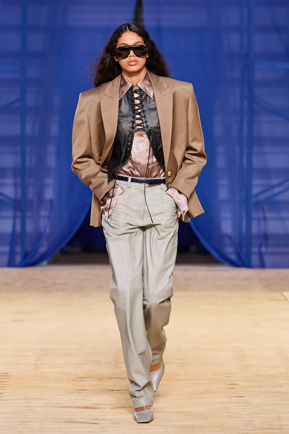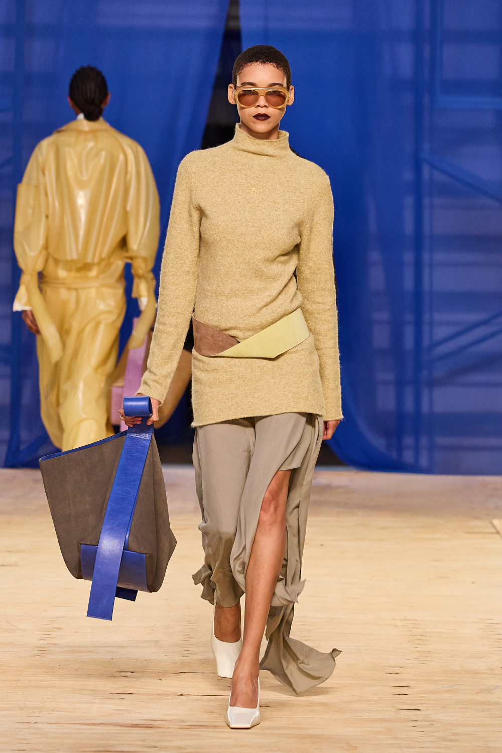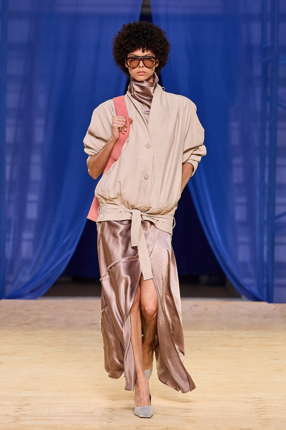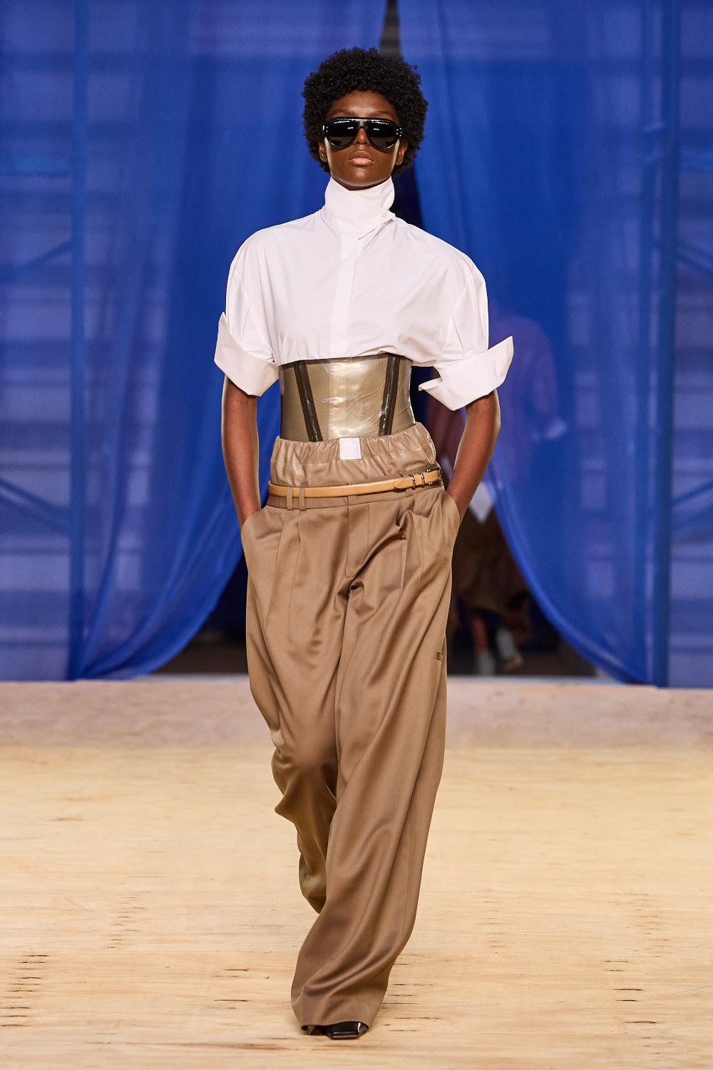 No desfile, a influencer que transformou o amor à moda em profissão mostrou exemplares diversos de paletós, calças e trenchs, em exercícios de alfaiataria ampla que falam diretamente ao coração da geração de jovens adultas que compõem a sua comunidade. Paralelamente, introduziu as peças de caimento molenga, com movimento e delicadeza, em camisas e vestidos que vão à festa. O couro e o látex também aparecem em alguns pontos, e dão astral fresh ao look.