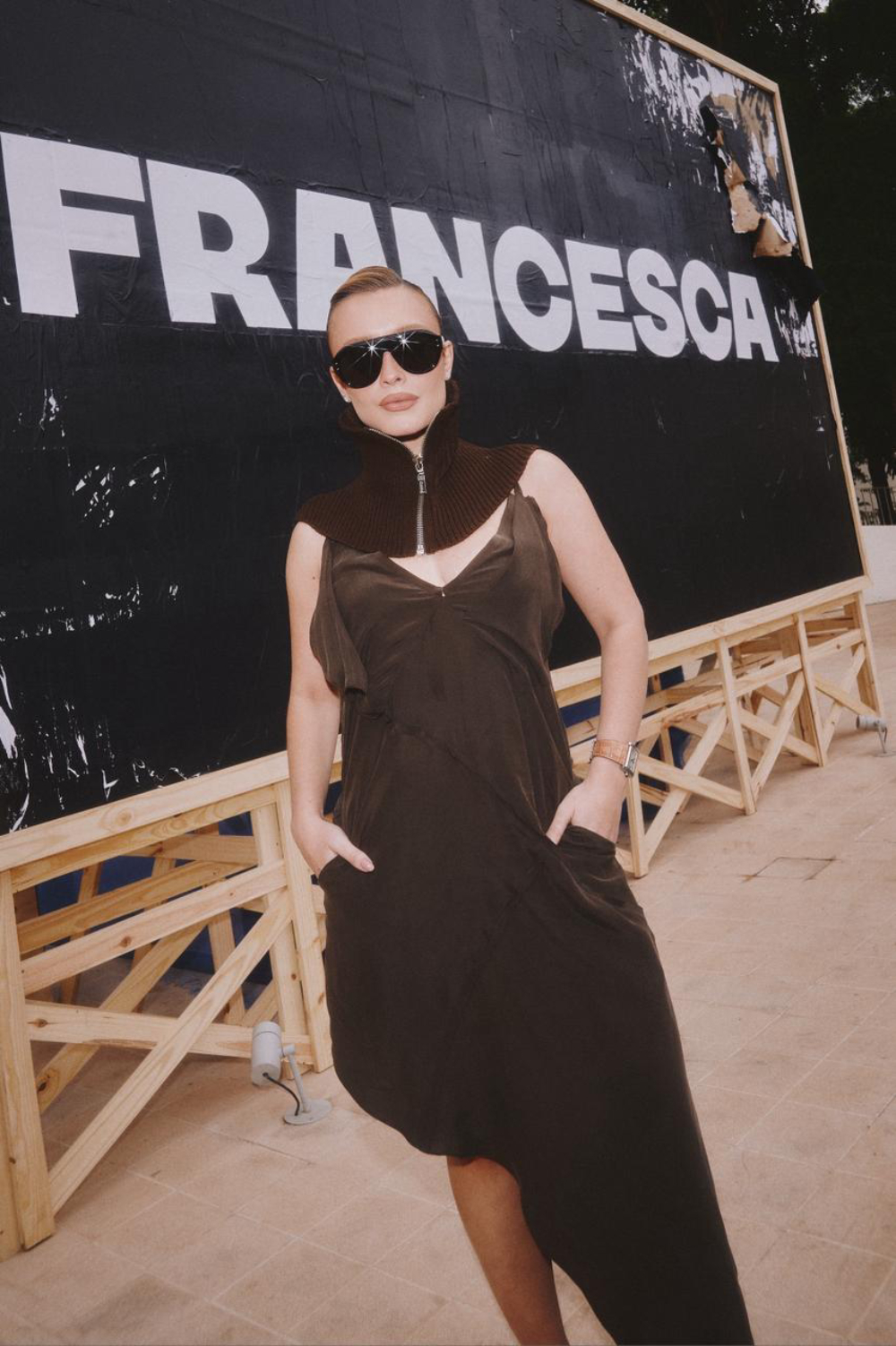Na última quarta-feira (29), o centro de tênis do Mercado Livre Arena Pacaembu se transformou em um verdadeiro canteiro de obras simbólico — e também em palco para um dos momentos mais esperados da moda brasileira recente. Ali, sob o olhar atento de uma plateia que reunia nomes do design, da arte e da cultura, Francesca Monfrinatti apresentou o primeiro desfile da FRANCESCA, sua label homônima que vem se consolidando como uma das vozes mais autênticas e instigantes da nova geração criativa.
