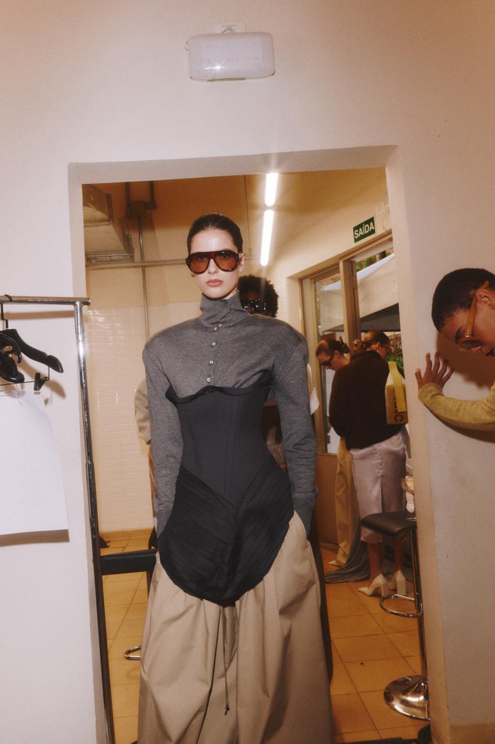 O cenário, assinado por Nídia Aranha, transformou a quadra em um grande canteiro de obras minimalistas, conectando-se à metáfora central da coleção. Entre costuras aparentes, sobreposições e estruturas mutáveis, o desfile acompanhou o ritmo da construção simbólica proposta pela designer — até o encerramento emocionante ao som de “Never Tear Us Apart”, do INXS, quando Francesca surgiu na passarela e foi recebida com fortes aplausos de uma plateia visivelmente tocada.