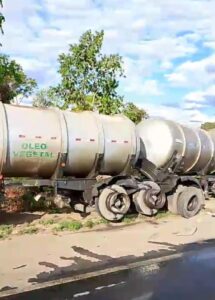 Segundo informações, uma das carretas acabou derramando óleo vegetal na pista, o que deixou o trecho escorregadio e aumentou o risco de novos acidentes.