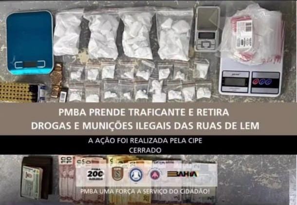 Um homem de 39 anos foi preso e grande quantidade de drogas e munições foi apreendida durante ação da CIPE/ Cerrado, na noite de quarta-feira (29), por volta das 20h, na Rua Bom Jesus da Lapa, na cidade de Luís Eduardo Magalhães.