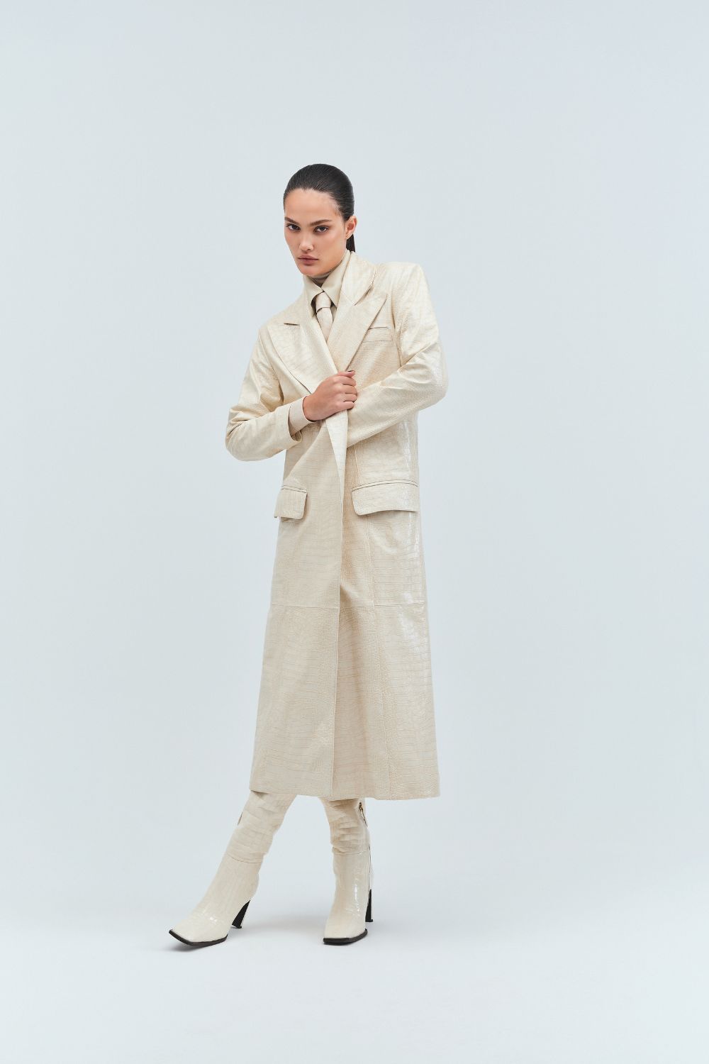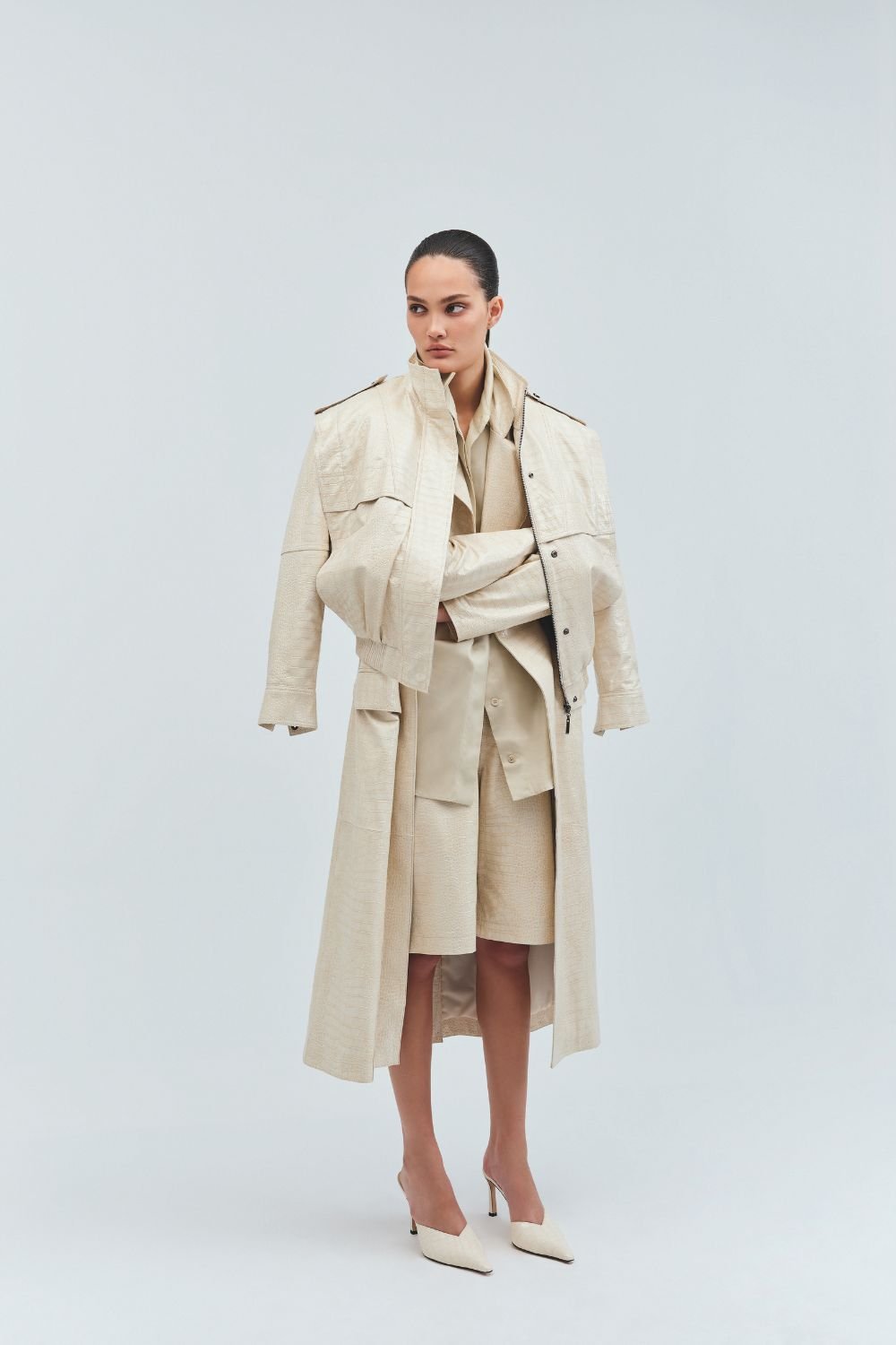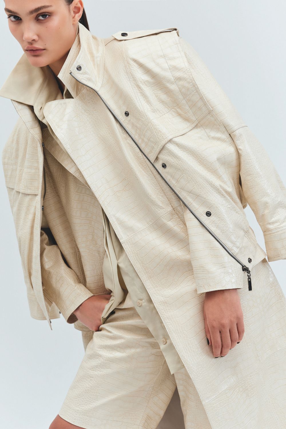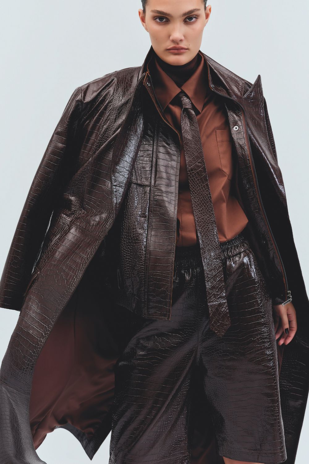 Intitulada Iorane Croco, a coleção conta com cinco peças feitas de couro de origem controlada, com textura croco, em apenas dois tons: off-white e marrom escuro. Jaqueta tipo bomber, bermuda de caimento solto, manteaux clássico, botas de cano alto e gravata fazem parte do lançamento, que funciona em look total e em peças separadas – para tanto, entram no mix um pull de gola roulé e uma camisa de tricoline, de modelagem ampla, que ajudam a compor os looks.