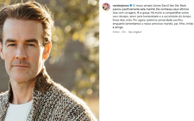 “Nosso amado James David Van Der Beek faleceu pacificamente esta manhã. Ele enfrentou seus últimos dias com coragem, fé e graça”, diz o comunicado, que também pede privacidade à família neste momento de luto.