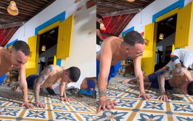 O momento rendeu boas risadas entre os amigos. Na legenda da publicação, Zé Vaqueiro admitiu a derrota: “Perdi as forças antes do tempo”, escreveu o cantor, completando o texto com emojis de risadas.