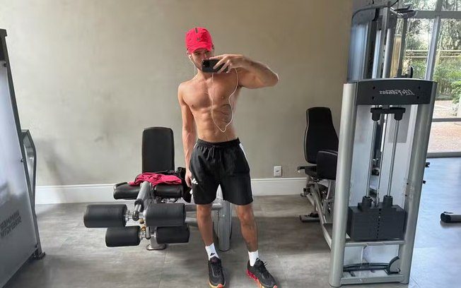 O artista de 23 anos aparece na primeira foto fazendo uma selfie no espelho da academia. Sem camisa, exibe o abdômen trincado e o peitoral definido. Em seguida, mostra um clique feito na praia de São Conrado, na zona sul do Rio, durante um dia de lazer que contou com a presença de Bruna Marquezine, sua ex-namorada.