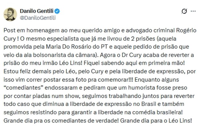 O advogado de defesa, Rogério Cury, celebrou o resultado e declarou ao Metrópoles que foi um grande resultado da comédia nacional, acrescentando que “ainda é preciso aguardar o prazo para saber se o Ministério Público vai recorrer, embora os advogados avaliem que, se houver recurso, ele será mais restrito a questões jurídicas”, disse Rogério.