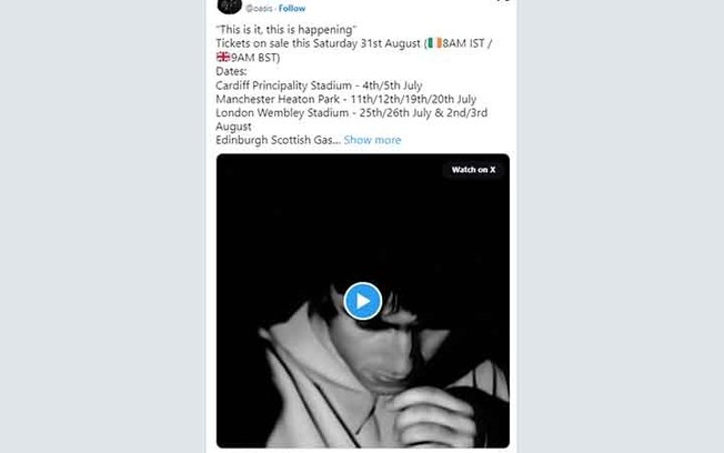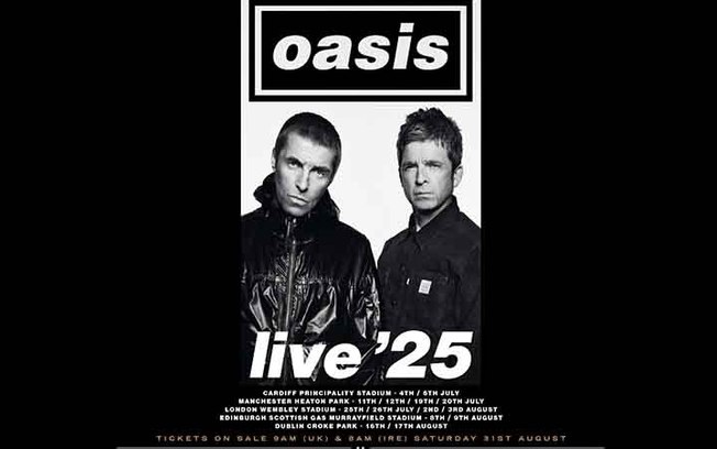A turnê de 2025 do Oasis terá duas datas de shows no Brasil: dias 22 e 23 de novembro, no estádio do MorumBIS, em São Paulo. Argentina (Buenos Aires) e Chile (Santiago) são os outros países sul-americanos incluídos no roteiro dos músicos britânicos. O anúncio oficial do retorno de uma das bandas de maior impacto nos anos 90 foi feito pelo Oasis na madrugada de 27 de agosto de 2024. Dias antes, já eram fortes os rumores da retomada da banda no noticiário da imprensa britânica bem como em postagens cifradas de Liam Gallagher nas redes sociais. “As armas silenciaram. As estrelas se alinharam. A grande espera chegou. Venham ver. Não passará na televisão”, dizia o curto comunicado da banda nas redes sociais. A banda de rock, encabeçada pelos irmãos Liam e Noel Gallagher, divulgou inicialmente as datas de 14 shows da turnê “Oasis Live 25”. Essa primeira leva de apresentações, antes de rumar para outros lugares, irão acontecer entre os meses de julho e agosto de 2025 no Reino Unido e Irlanda. A programação será aberta nos dias 4 e 5 de julho, no Principality Stadium, em Cardiff, no País de Gales. Na sequência, serão quatro apresentações no Heaton Park, em Manchester, na Inglaterra (11, 12, 19 e 20 de julho), quatro no estádio de Wembley, em Londres (25 e 26 de julhoDepois, foram anunciadas datas de shows na América do Norte (Estados, Canadá e México) e também na Austrália.O comunicado do retorno da banda veio na semana em que a separação completaria 15 anos. O marco foi o dia 28 de agosto de 2009, quando, horas após o cancelamento de um show na França, o guitarrista Noel Gallagher anunciou sua saída do grupo. “É com tristeza e grande alívio que digo que desisto do Oasis esta noite. As pessoas podem dizer o que quiserem, mas eu não consigo trabalhar com Liam por mais nenhum dia”, afirmou Noel na ocasião.
