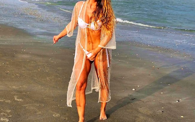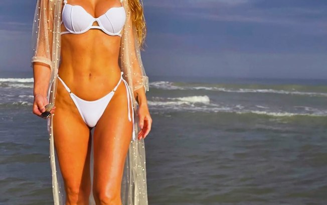 Por meio das redes sociais, a ex-contratada do SBT abriu um álbum de fotos com os principais momentos que vivenciou na viagem. Na ocasião, ela apostou em um biquíni fio-dental branco. Além disso, Andrade usava uma saída de praia transparente com pedras brancas.