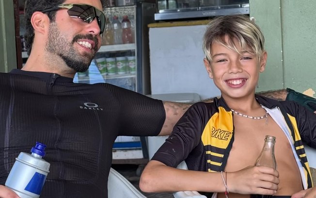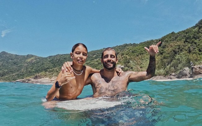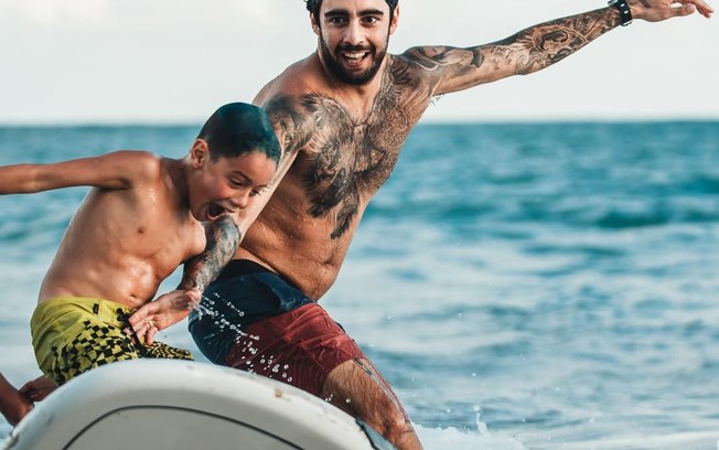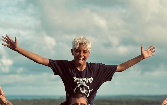 No registro, feito no último domingo (01), o surfista aparece ao lado de Dom, de 14 anos, e celebrou o momento com a legenda “Rico daquilo que o dinheiro não compra”.