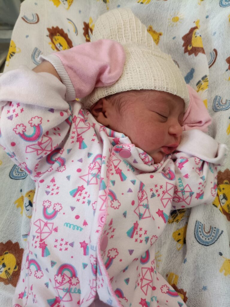 Primeira filha de Tainara de Souza Santos, Indianara Santos nasceu às 13h08, de parto normal, medindo 45 centímetros e pesando 2,5 quilos. Após o nascimento, a recém-nascida passou pelos cuidados iniciais e avaliação médica e deverá receber, nas próximas horas, as vacinas BCG, que protege contra a tuberculose, e hepatite B.