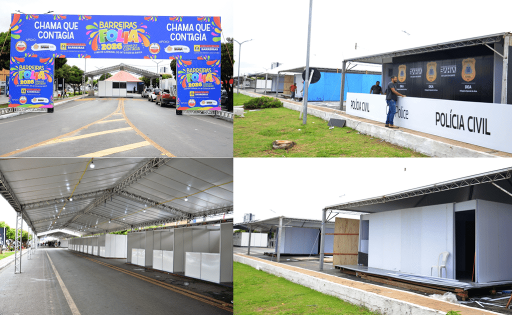A Prefeitura de Barreiras, por meio da Secretaria de Indústria, Comércio e Serviços, acompanha a fase final de montagem da estrutura do Barreiras Folia 2026, que começa nesta sexta-feira, (13). Os três circuitos oficiais já estão praticamente prontos para receber moradores e visitantes, consolidando o Carnaval como um dos maiores eventos populares do município.