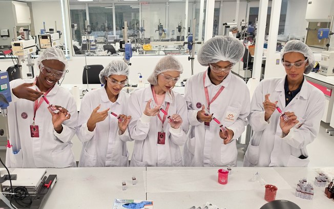 Depois dessa imersiva passagem, seguimos na direção do lugar que me é sempre o favorito: os laboratórios. Corretamente indumentados, para manutenção das regras de segurança e EPIs laboratoriais, seguimos para o laboratório de confecção e teste de cosméticos para conhecermos novidades e ícones da marca.