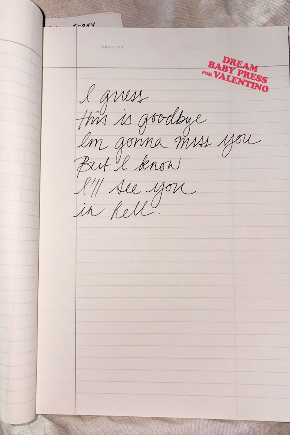 Criada em 2022, a Dream Baby Press selecionou cartas de Jemima Kirke (artista multidisciplinar e atriz que você deve reconhecer se já assistiu a série “Girls”, da HBO), Brontez Purnell (escritor e músico premiado), Mackenzie Thomas (que compartilha seu storytelling também no ambiente digital), Jerry Stahl (um romancista e roteirista), Coco Mellors (ensaísta e autor best-seller) e Matt Starr, fundador da plataforma de entretenimento focada em literatura e poesia.