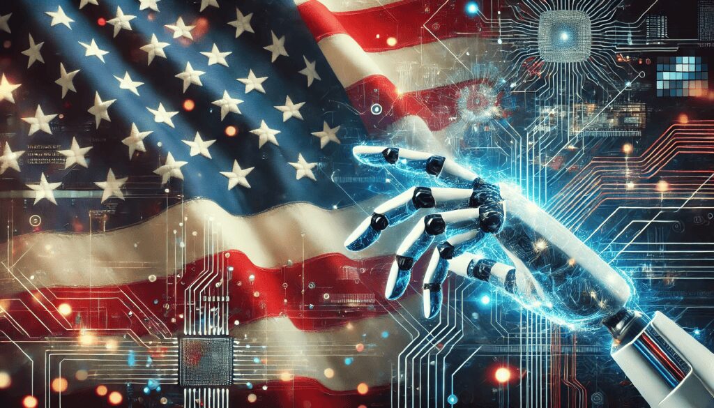 Trump quer EUA na vanguarda da IA (Imagem gerada com IA via DALL-E/Vitória Gomez/Olhar Digital)