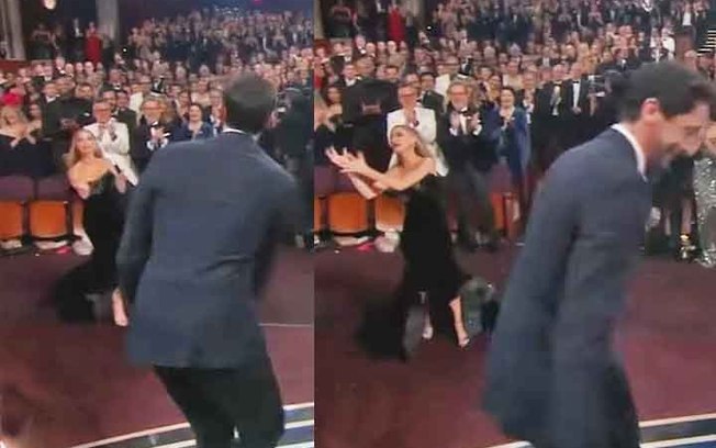 Ao se dirigir para o palco, o astro de “O Brutalista” lembrou que mascava um chiclete e decidiu proceder de uma forma vista como inapropriada. Ele retirou a goma de mascar da boca e atirou para sua namorada, Georgina Chapman.