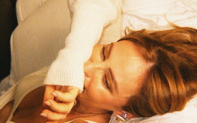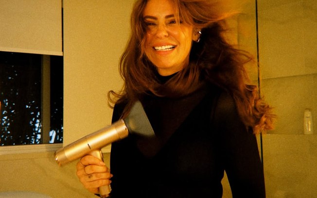 O carrossel de fotografias ainda conta com imagens da beldade vestindo um body preto, enquanto seca o cabelo.