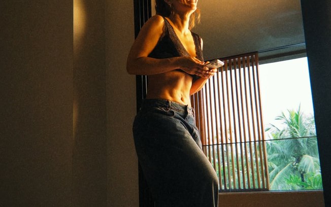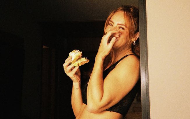 Na postagem, a atriz ainda compartilhou fotos de outros momentos. Em uma delas, ela surge sorridente, vestindo uma calça jeans combinada com um sutiã de renda preto. Com o mesmo look, mas em outro registro, Paolla saboreia um sanduíche, enquanto sorri e cobre o rosto com uma das mãos.