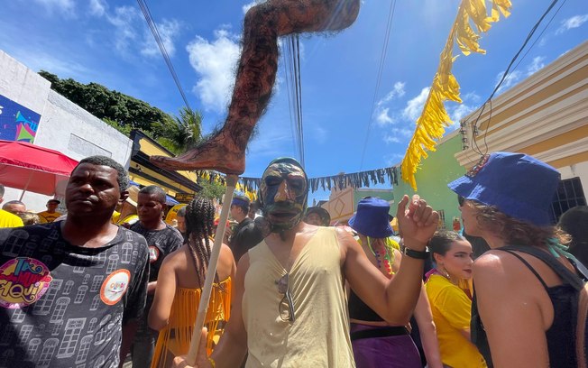 A troça carnavalesca Pitombeira dos Quatro Cantos arrastou uma multidão pelas ladeiras de Olinda (PE), na manhã desta segunda-feira (16). Neste ano, a agremiação tem como tema do desfile do filme pernambucano “O Agente Secreto”.
