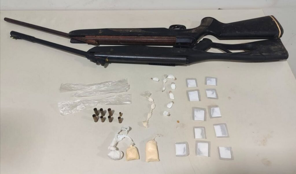 A ação resultou na apreensão de drogas, armas adaptadas ao calibre 22 e cápsulas de munições, sendo todo o material juntamente com o suspeito apresentados na 24ª COORPIN para as providências cabíveis.