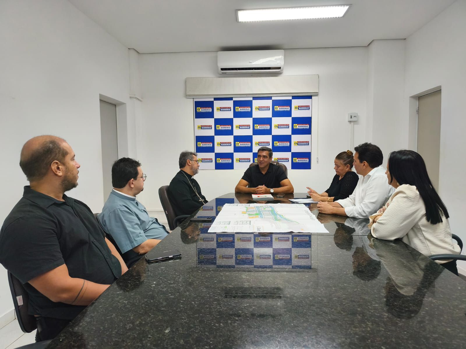 Nesta quinta-feira (22), o prefeito Otoniel Teixeira oficializou a entrega da escritura de doação do terreno da Igreja Nossa Senhora de Fátima do bairro Flamengo à Diocese de Barreiras. O ato, que aconteceu na sala de reuniões do Gabinete, garante segurança jurídica ao espaço religioso, aos fiéis e à Diocese. A cerimônia contou com a presença do vice-prefeito e procurador-geral do Município, Túlio Viana; do Bispo Diocesano, Dom Moacir Silva Arantes; do padre Jocleilson Sebastião; do assessor jurídico Gladiston Rocha; da assessora do Gabinete, Lurdinha Pessoa e da tabeliã Mariene Rosa.