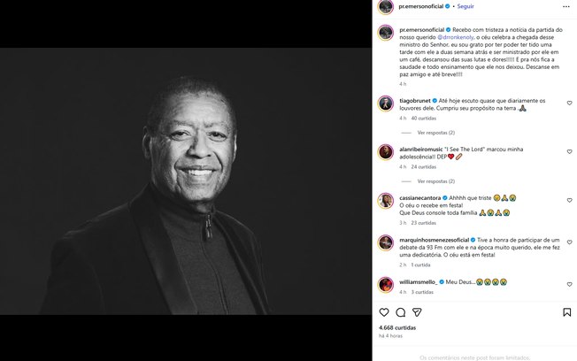“O céu celebra a chegada desse ministro do Senhor. Sou grato por ter tido uma tarde com ele a duas semana atrás e ser ministrado por ele em um café, descansou das suas lutas e dores!!!!! E pra nós fica a saudade e todo ensinamento que ele nos deixou. Descanse em paz amigo e até breve!!!!”, comentou o pastor.