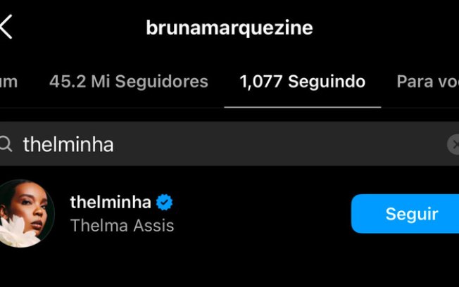 No X, antigo Twitter, os usuários notaram que Thelma Assis, campeã do BBB 20, parou de seguir Bruna Marquezine nas redes sociais. Nesta quinta-feira (13), os usuários especularam o motivo do unfollow e resgataram o nome de Rodrigo Branco, influenciador que foi acusado de racismo contra a ex-reality.