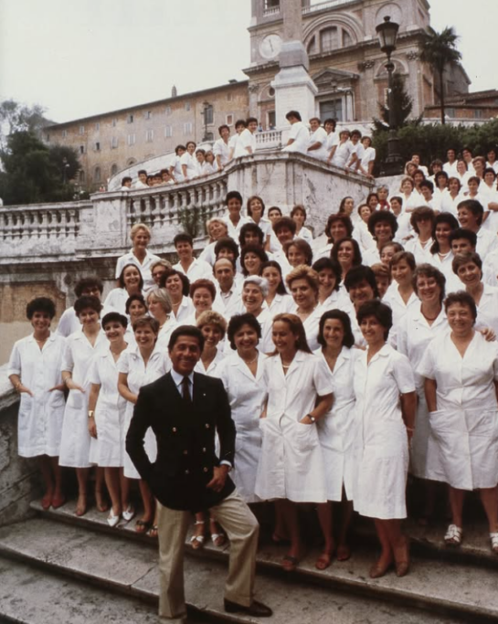 Valentino Garavani e seu time de costureiras: segundo Alessandro Michele, elas são as guardiãs dos saberes da alta-costura