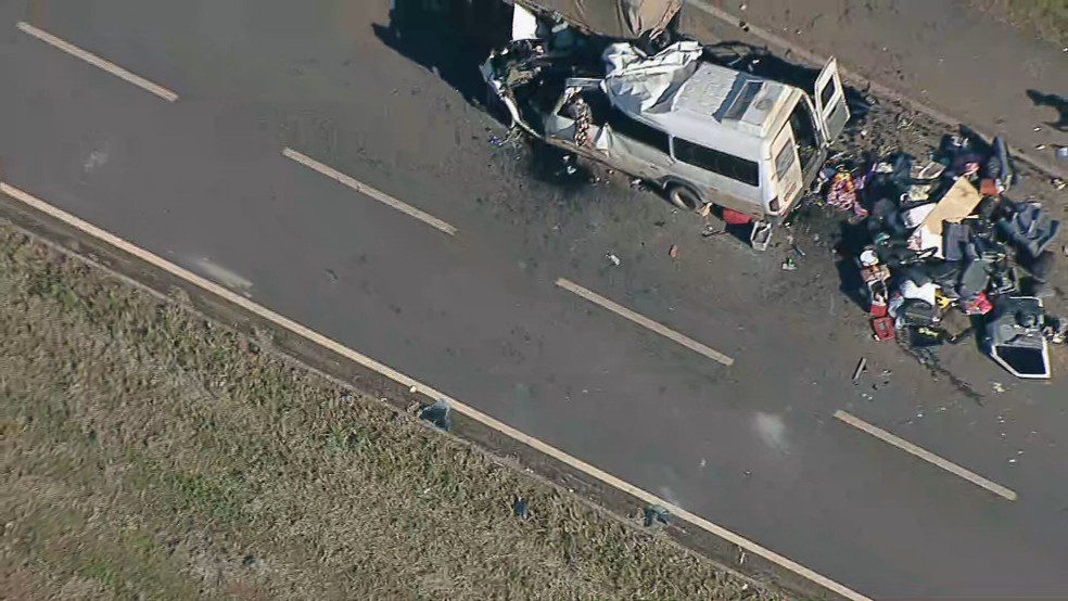 A van estava vindo de Santa Rita de Cássia (BA), seguia sentido Brasília e bateu na traseira do caminhão. O impacto deixou destruída parte do veículo que transportava passageiros.