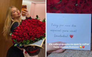 A apresentadora ainda exibiu trechos da live em que falou sobre a rotina do casal, que mantém relacionamento à distância. Ela afirmou que o namoro segue em ritmo tranquilo. “A gente está vivendo a fase do namoro com calma. A gente se liga, a gente conversa o dia inteiro no WhatsApp”, declarou.