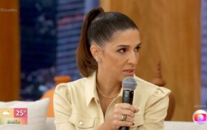 A influenciadora reagiu com surpresa à resposta da filha e fez comentários pessoais durante a transmissão. “Gente, essa criança sou eu. Amiga, eu juro, amiga, ela falou: ‘Como você está se sentindo?’. ‘Barriguda, lanchei demais, estou barriguda’. Cara, como pode?”, afirmou.