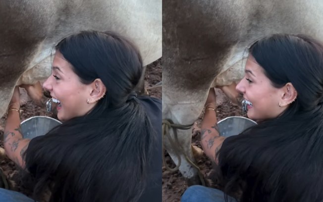 Ana Castela ordenha vaca na Fazenda Talismã, do ex-sogro, LeonardoFoto: Reprodução/Instagram